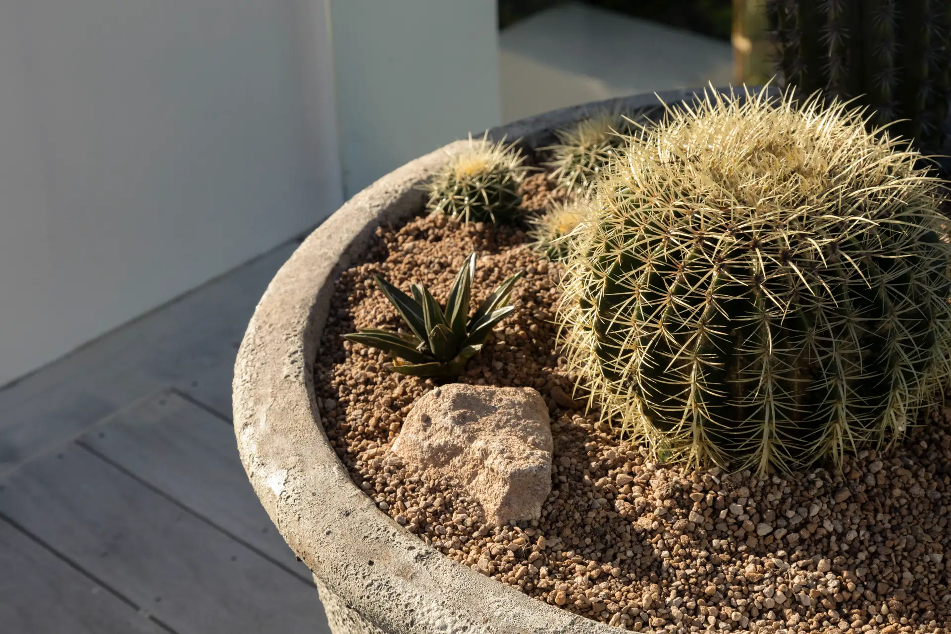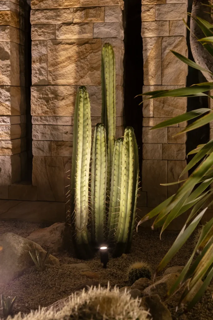 This project was one of our most ambitious to date. In particular, the harvesting, transporting, planting and securing the three giant feature cacti was full of complex challenges, and we have an enermous amount of pride in the end result we have been able to deliver for the customer.