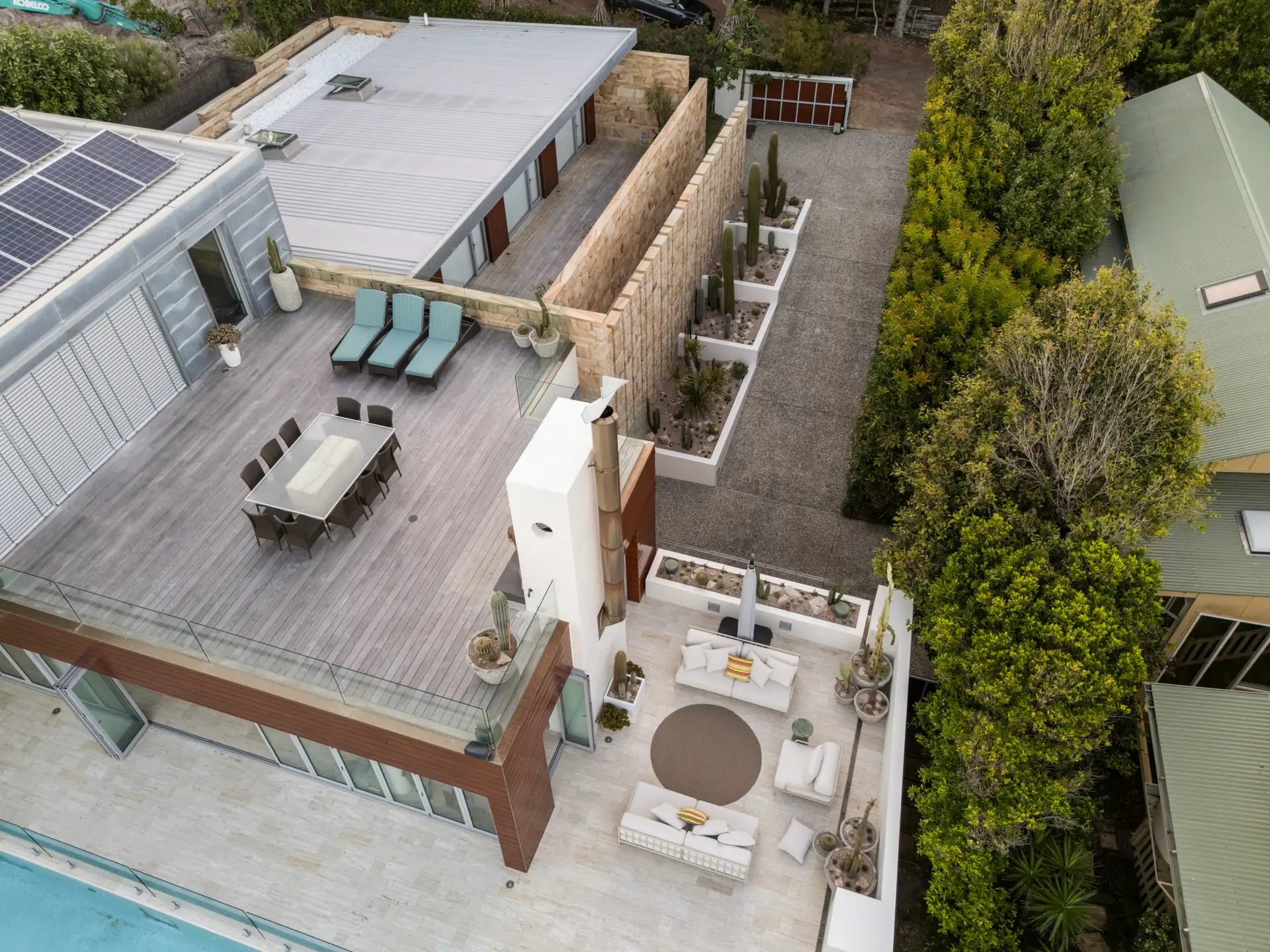 On the upper level a miniaturised landscape been sculpted into a raised planter, and potted specimens have been installed extensively throughout the residence.